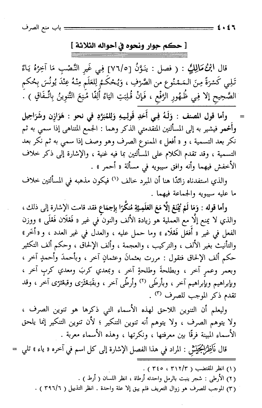 (¬3) الموجب للصرف هو زوال التعريف فلم يبق إلا علة واحدة. انظر التذييل (6/ 396).