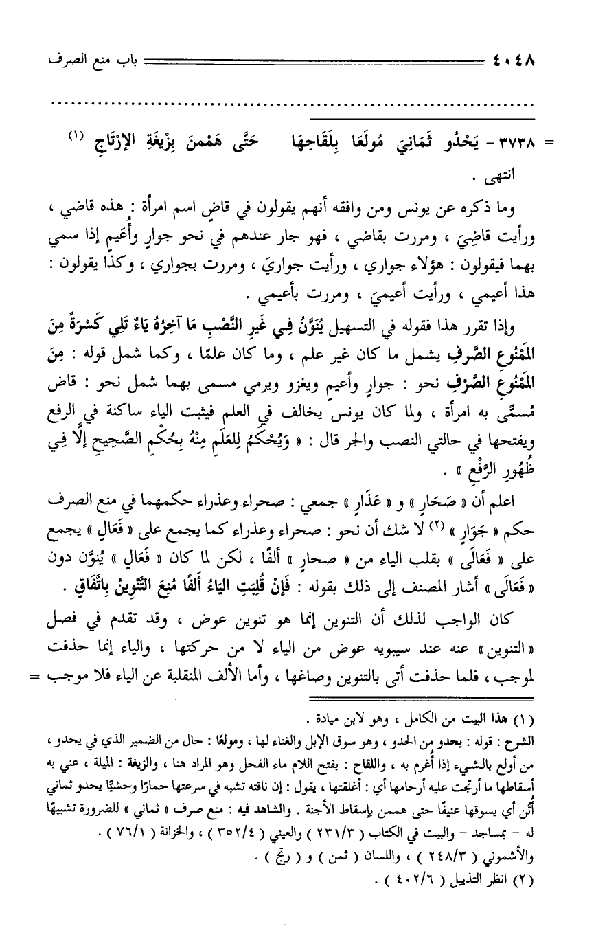 وما ذكره عن يونس ومن وافقه أنهم يقولون في قاض اسم امرأة: هذه قاضي، ورأيت قاضي، ومررت بقاضي، فهو جار عندهم في نحو جوار وأعيم إذا سمي بهما فيقولون: هؤلاء جواري، ورأيت جواري، ومررت بجواري، وكذا يقولون: