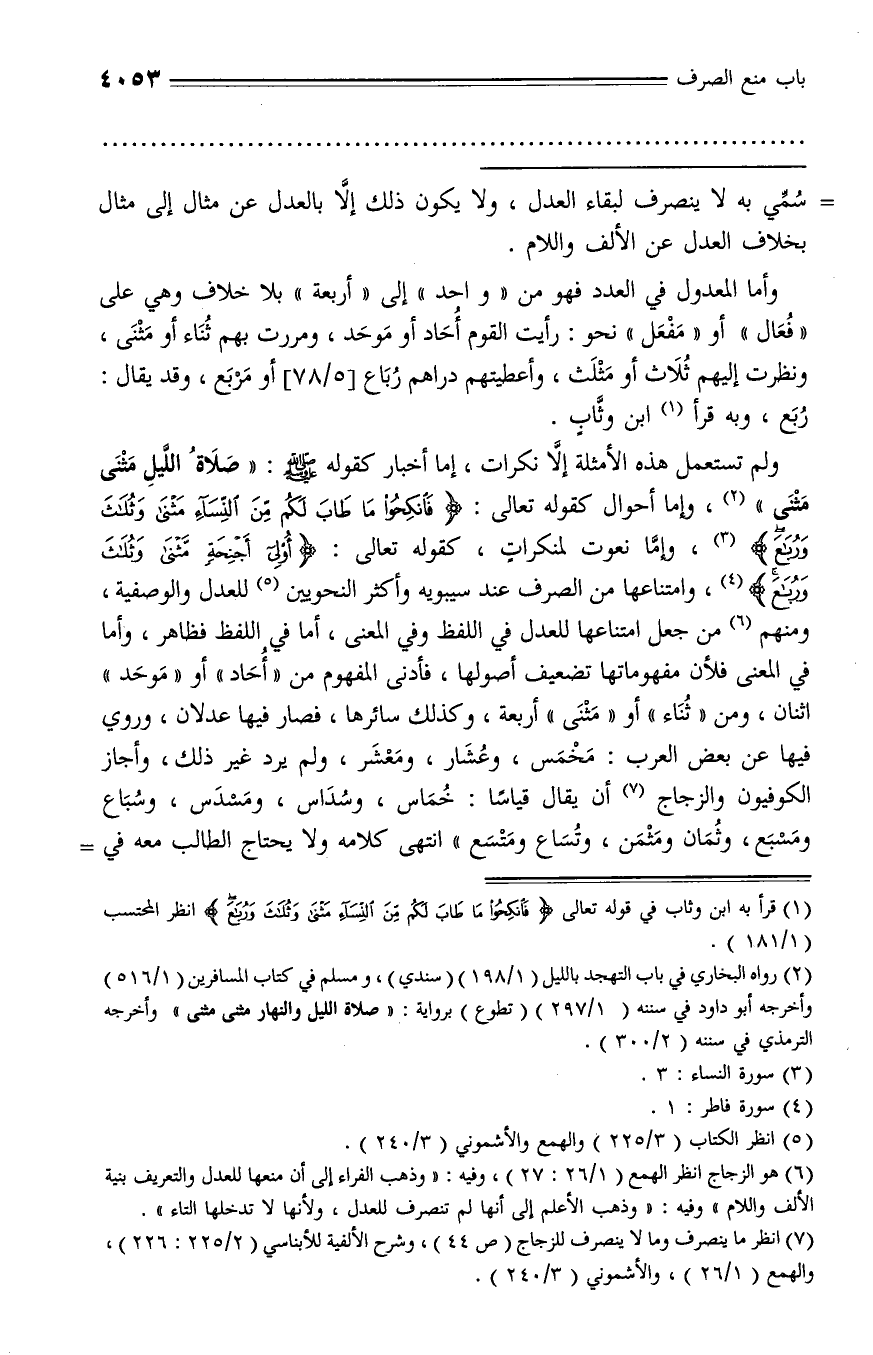 (¬7) انظر ما ينصرف وما لا ينصرف للزجاج (ص 44)، وشرح الألفية للأبناسي (2/ 225: 226)، والهمع (1/ 26)، والأشموني (3/ 240).