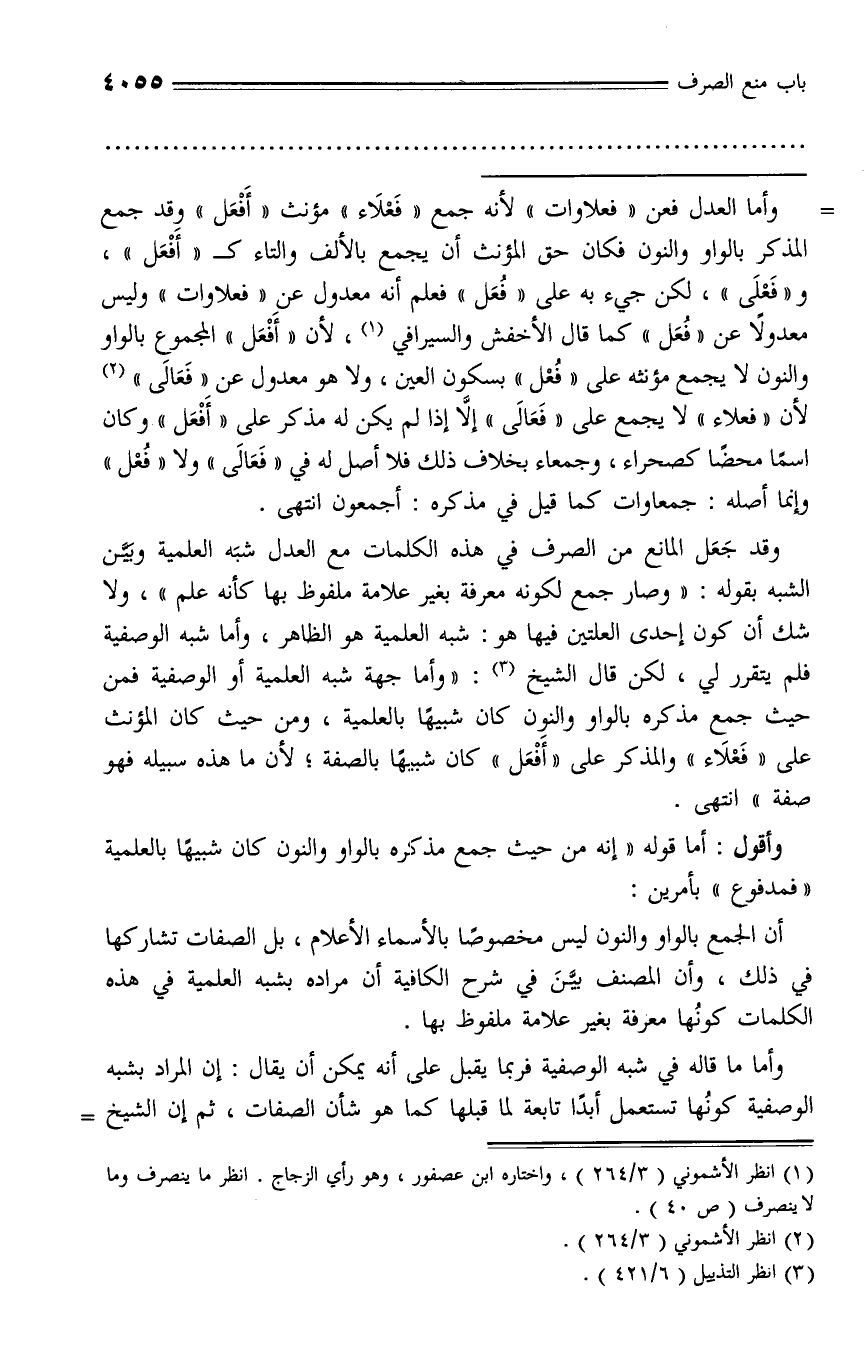 (¬1) انظر الأشموني (3/ 264)، واختاره ابن عصفور، وهو رأي الزجاج. انظر ما ينصرف وما لا ينصرف (ص 40).