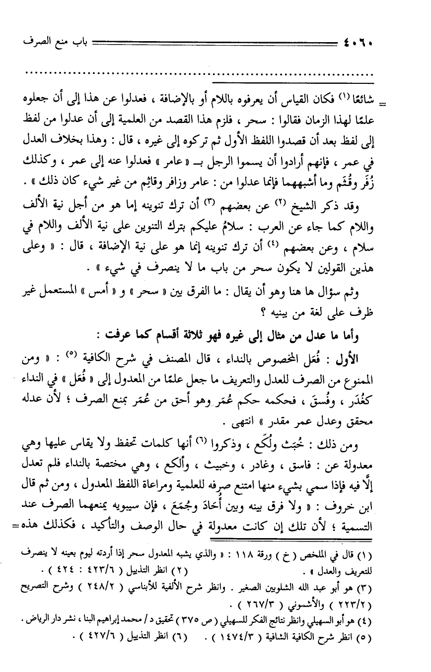 (¬1) قال في الملخص (خ) ورقة 118: «والذي يشبه المعدول سحر إذا أردته ليوم بعينه لا ينصرف للتعريف والعدل».