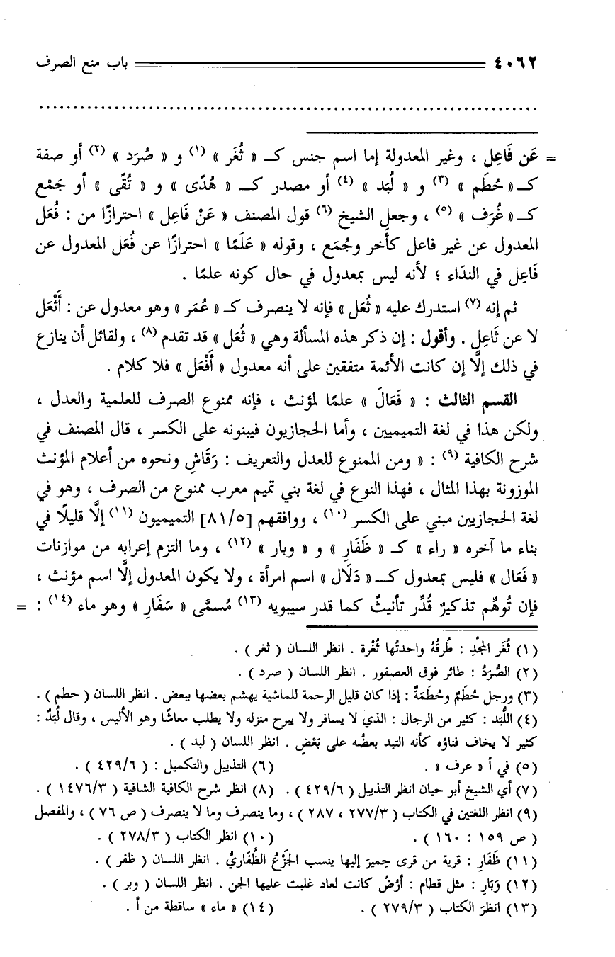 (¬9) انظر اللغتين في الكتاب (3/ 277، 287)، وما ينصرف وما لا ينصرف (ص 76)، والمفصل (ص 159: 160).