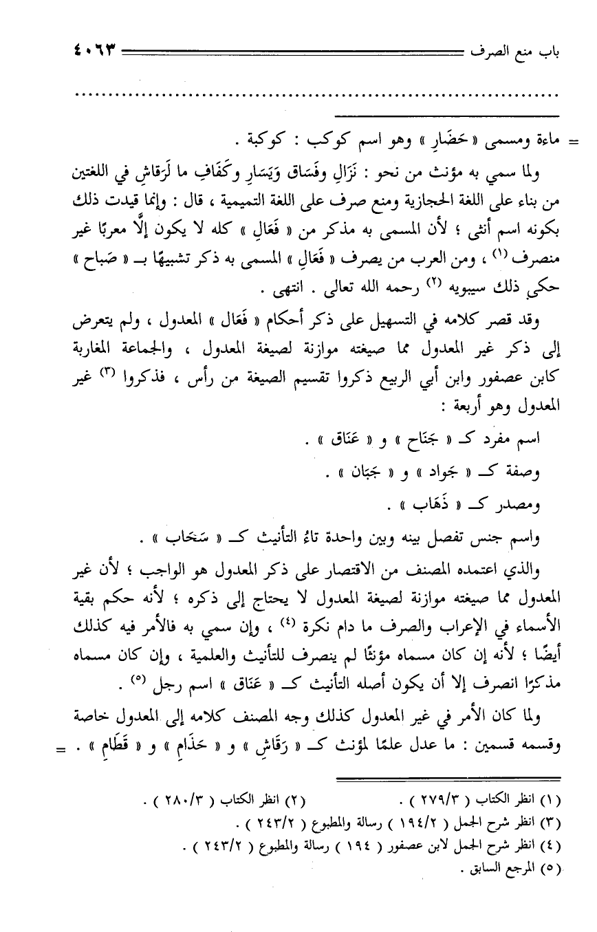 (¬4) انظر شرح الجمل لابن عصفور (194) رسالة والمطبوع (2/ 243).