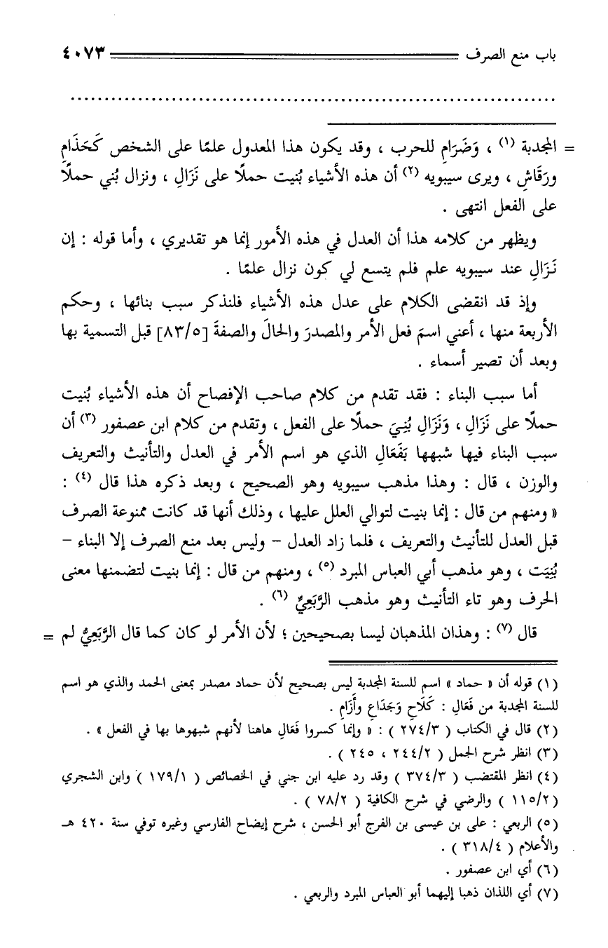 ويظهر من كلامه هذا أن العدل في هذه الأمور إنما هو تقديري، وأما قوله: إن نزال عند سيبويه علم فلم يتسع لي كون نزال علما.