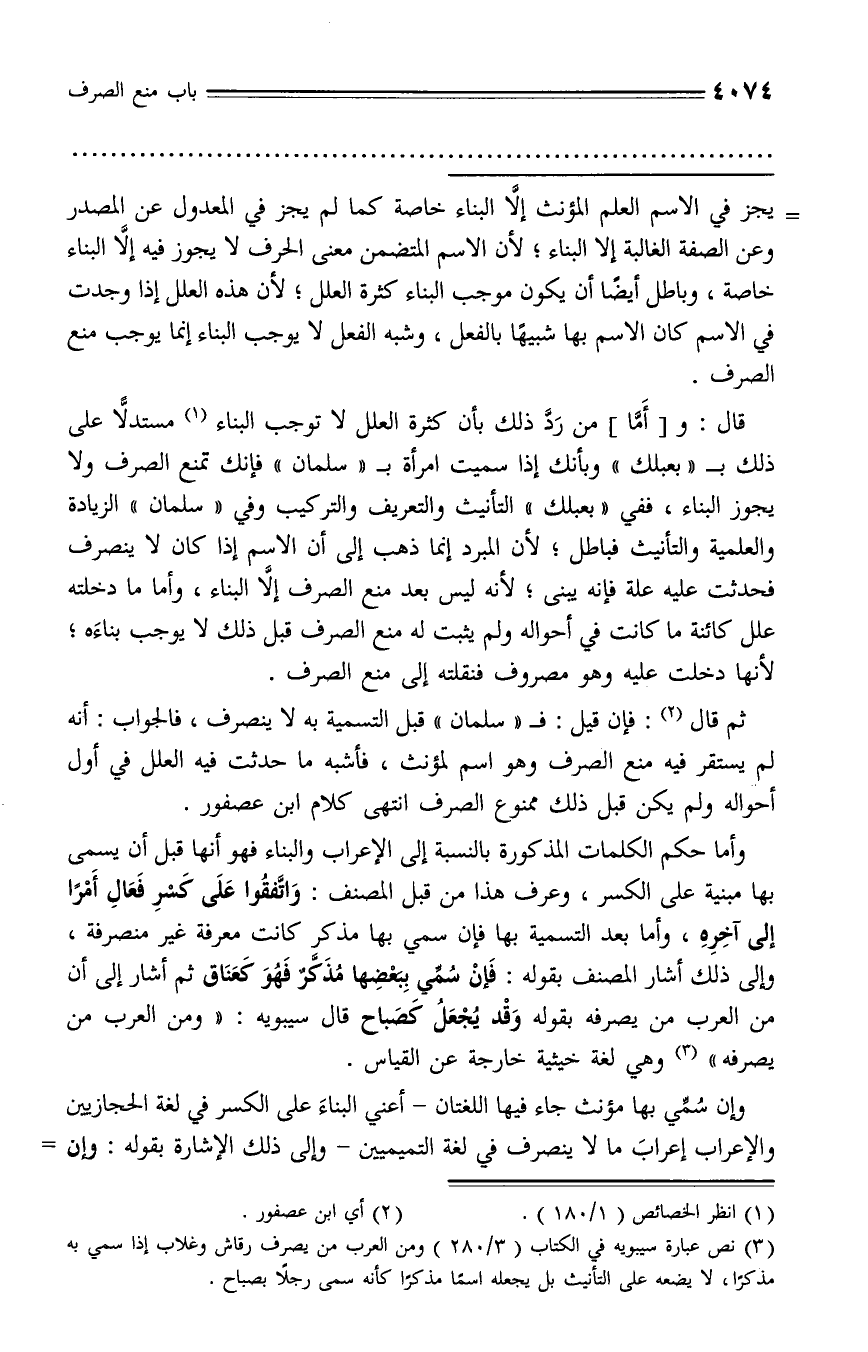 (¬3) نص عبارة سيبويه في الكتاب (3/ 280) ومن العرب من يصرف رقاش وغلاب إذا سمي به مذكرا، لا يضعه على التأنيث بل يجعله اسما مذكرا كأنه سمى رجلا بصباح.