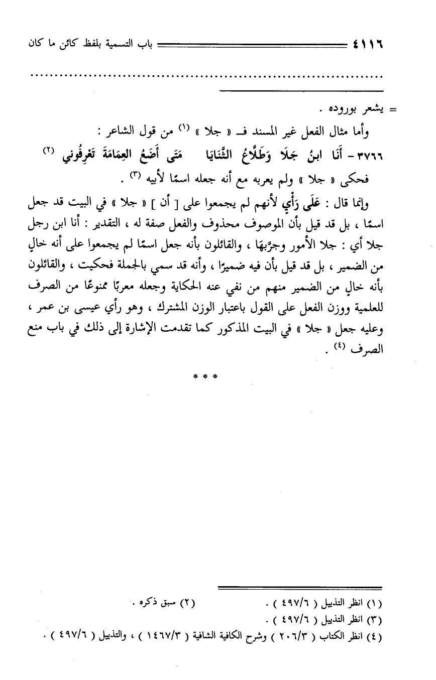 (¬4) انظر الكتاب (3/ 206) وشرح الكافية الشافية (3/ 1467)، والتذييل (6/ 497).