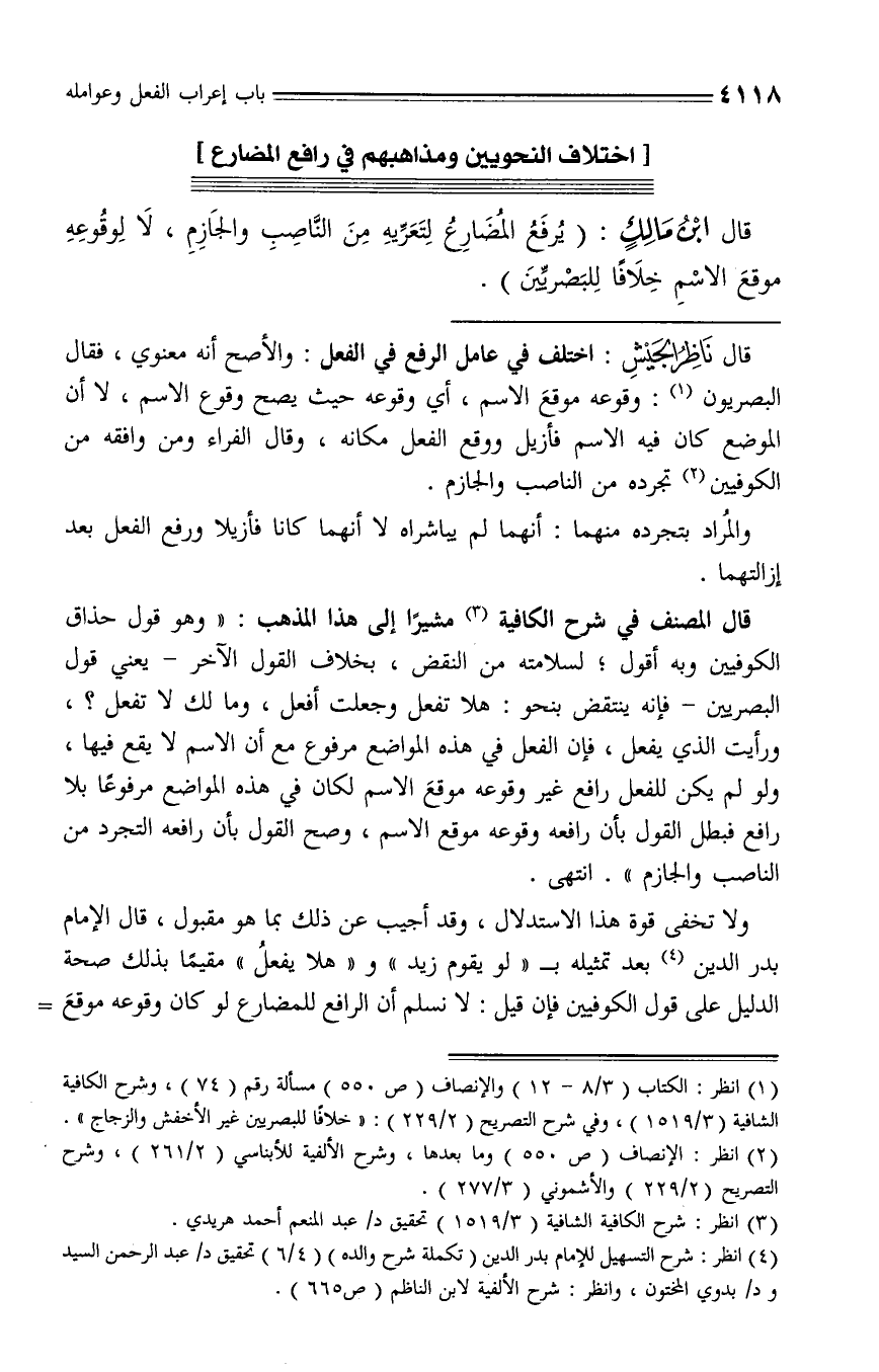 (¬4) انظر: شرح التسهيل للإمام بدر الدين (تكملة شرح والده) (4/ 6) تحقيق د/ عبد الرحمن السيد ود/ بدوي المختون، وانظر: شرح الألفية لابن الناظم (ص 665).