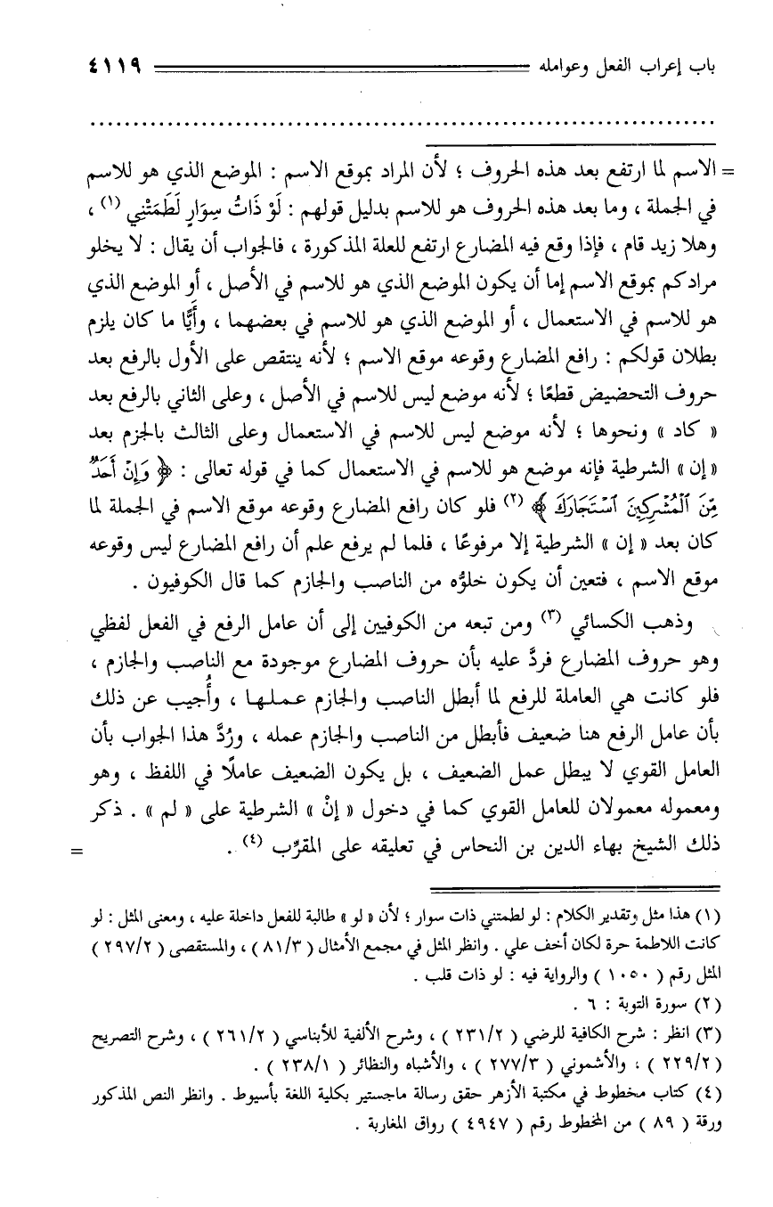 (¬3) انظر: شرح الكافية للرضي (2/ 231)، وشرح الألفية للأبناسي (2/ 261)، وشرح التصريح (2/ 229)، والأشموني (3/ 277)، والأشباه والنظائر (1/ 238).