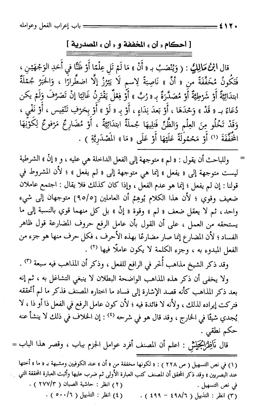 (¬1) في نص التسهيل (ص 228): «لكونها مخففة من «أن» عند الكوفيين ومشبهة بـ «ما» أختها عند البصريين» وقد ذكر المحقق أن المصنف كتب العبارة الأولى ثم ضرب عليها وأثبت العبارة المحققة التي في نص التسهيل.