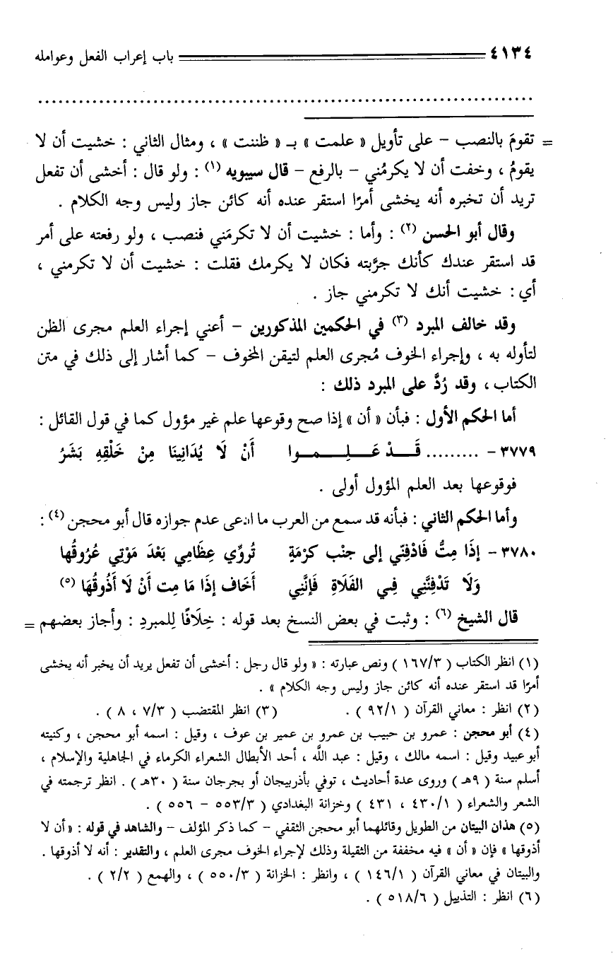 (¬1) انظر الكتاب (3/ 167) ونص عبارته: «ولو قال رجل: أخشى أن تفعل يريد أن يخبر أنه يخشى أمرا قد استقر عنده أنه كائن جاز وليس وجه الكلام».