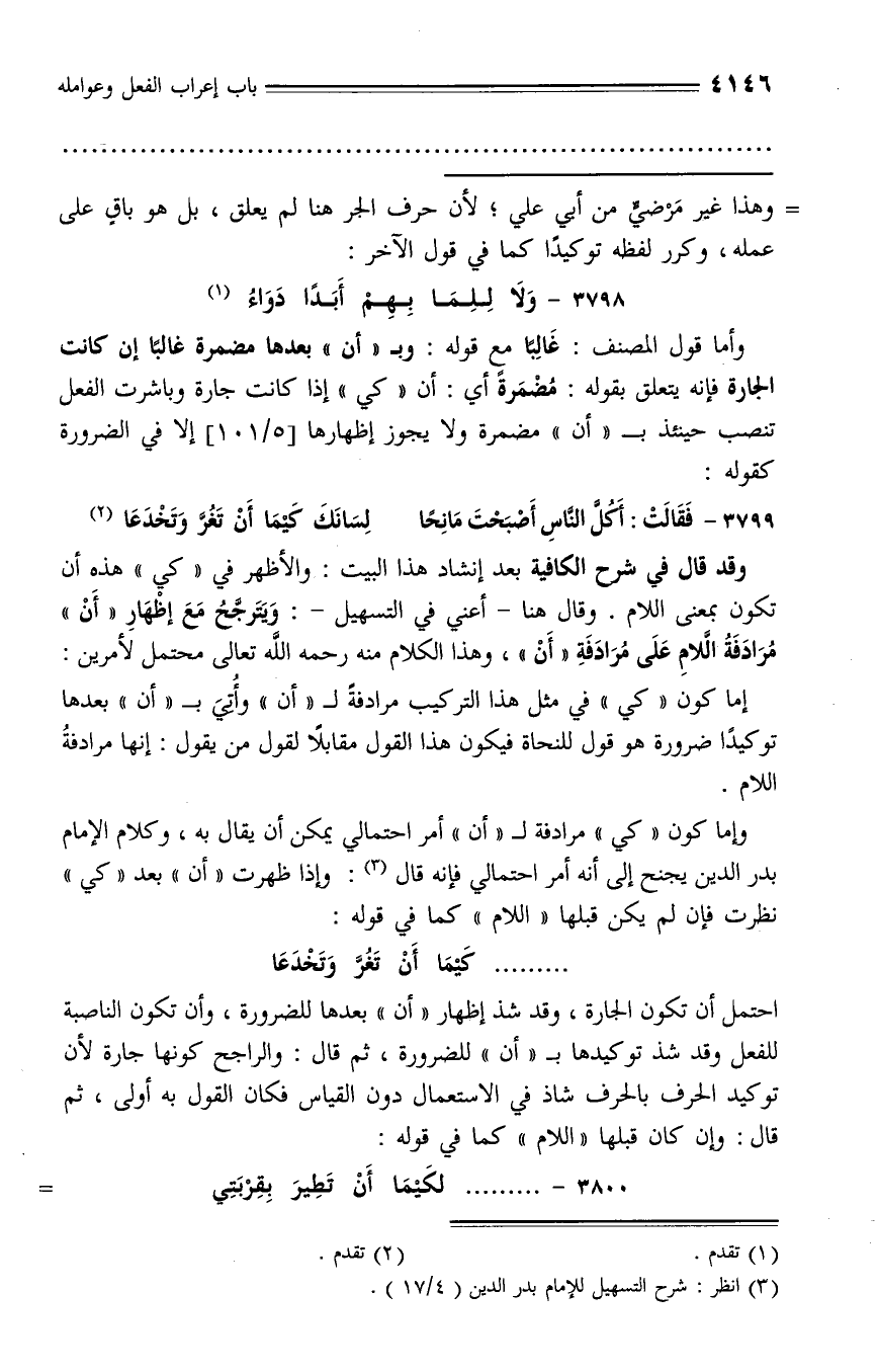 (¬3) انظر: شرح التسهيل للإمام بدر الدين (4/ 17).