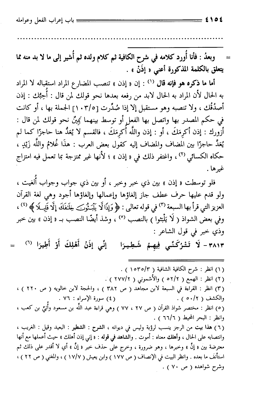 وبعد: فأنا أورد كلامه في شرح الكافية ثم كلام ولده ثم أشير إلى ما لا بد منه مما يتعلق بالكلمة المذكورة أعني «إذن».