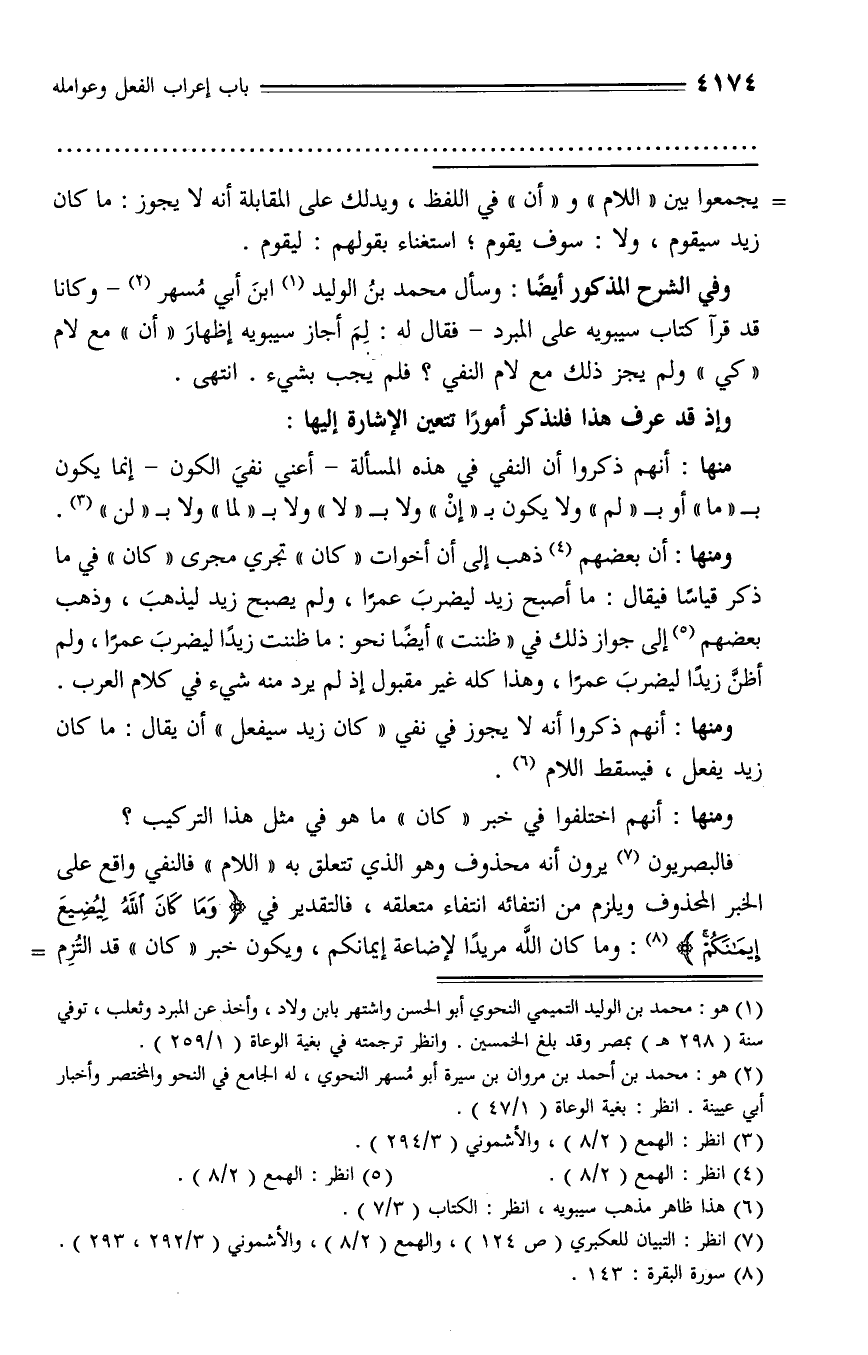 (¬7) انظر: التبيان للعكبري (ص 124)، والهمع (2/ 8)، والأشموني (3/ 292، 293).
