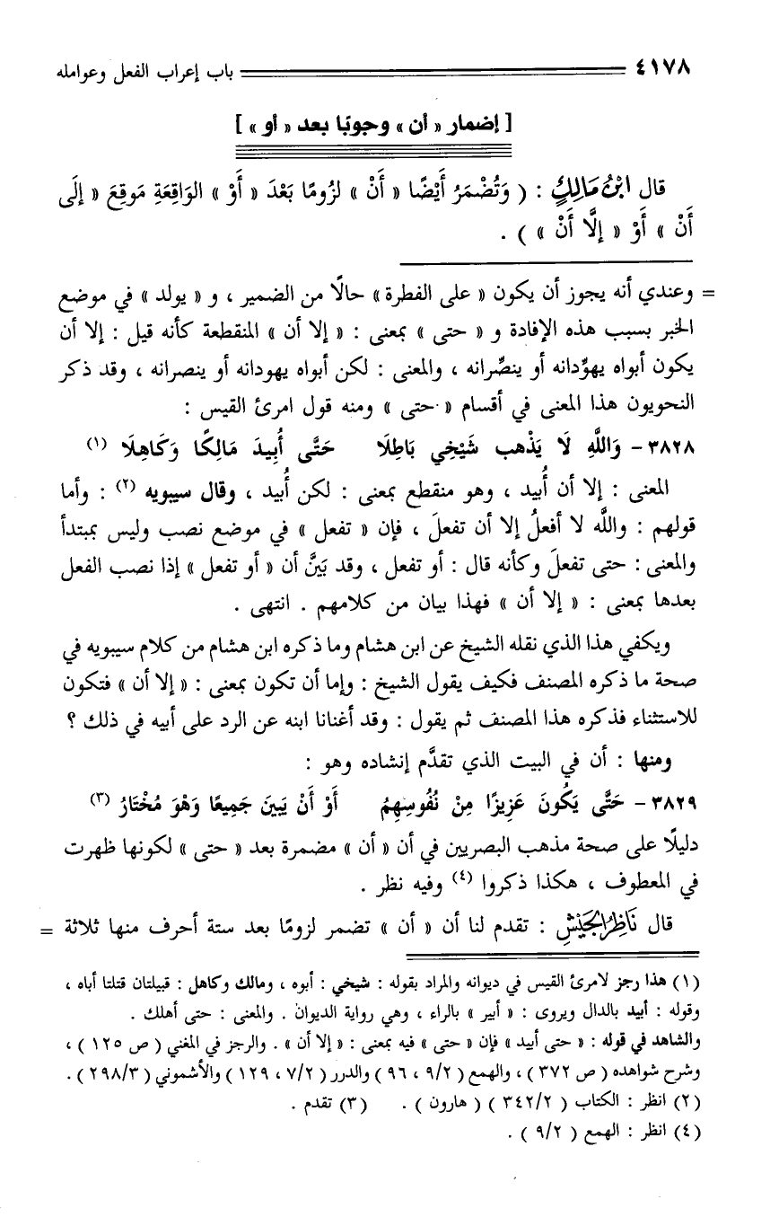 ويكفي هذا الذي نقله الشيخ عن ابن هشام وما ذكره ابن هشام من كلام سيبويه في صحة ما ذكره المصنف فكيف يقول الشيخ: وإما أن تكون بمعنى: «إلا أن» فتكون للاستثناء فذكره هذا المصنف ثم يقول: وقد أغنانا ابنه عن الرد على أبيه في ذلك؟