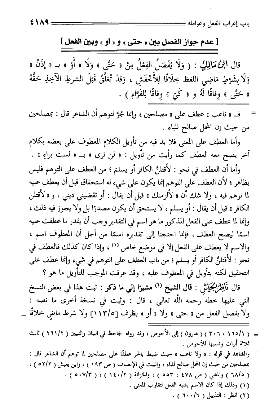 قال ناظر الجيش: قال الشيخ (¬2) مشيرا إلى ما ذكر: ثبت هذا في بعض النسخ التي عليها خطه رحمه الله تعالى، قال: وثبت في نسخة أخرى ما نصه: