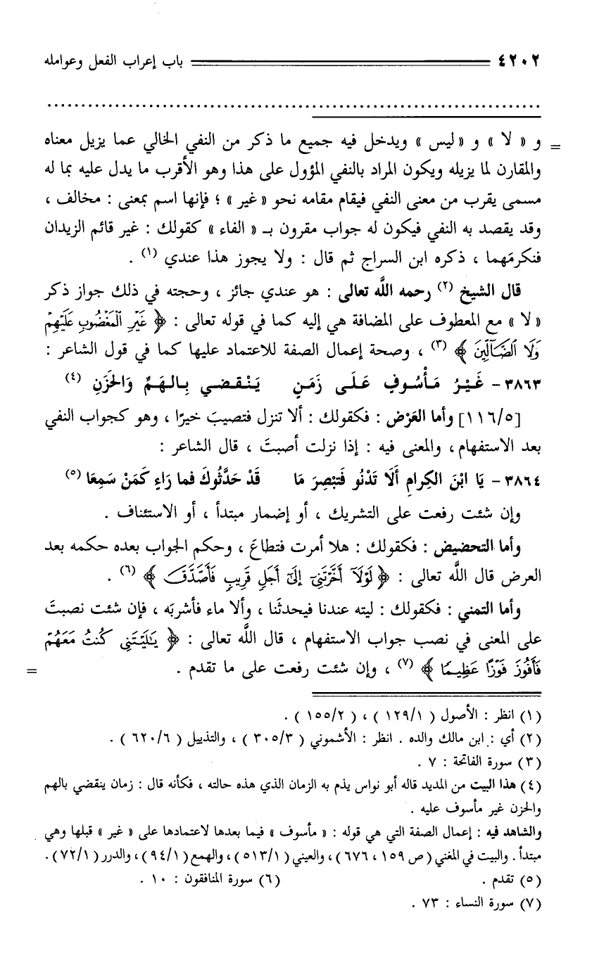 إليه كما في قوله تعالى: غَيْرِ الْمَغْضُوبِ عَلَيْهِمْ وَلَا الضَّالِّينَ (¬3)، وصحة إعمال الصفة للاعتماد عليها كما في قول الشاعر: