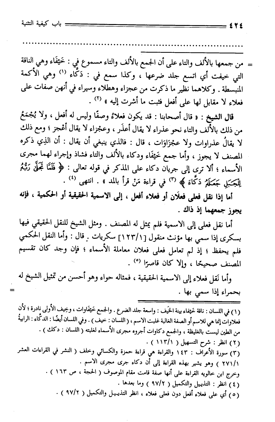 (¬5) أي على فعلاء أفعل دون فعلى فعلاء، انظر التذييل والتكميل (2/ 97).