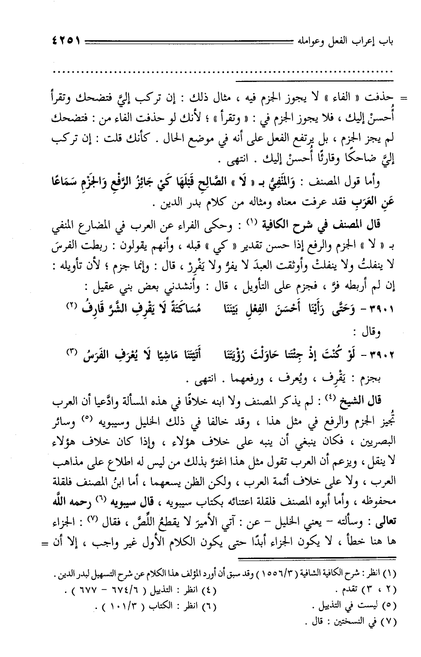 (¬1) انظر: شرح الكافية الشافية (3/ 1556) وقد سبق أن أورد المؤلف هذا الكلام عن شرح التسهيل لبدر الدين.