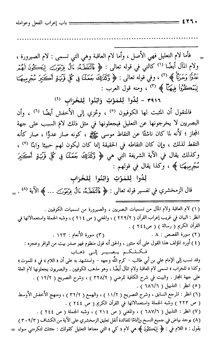 (¬1) لام العاقبة ولام المآل من تسميات البصريين، والصيرورة من تسميات الكوفيين.