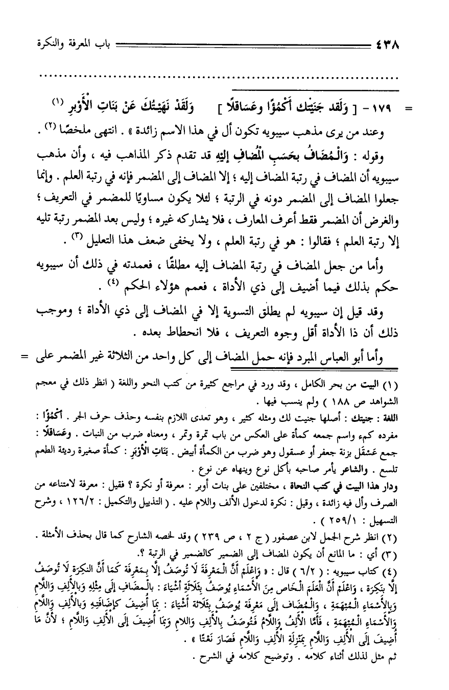 وأما من جعل المضاف في رتبة المضاف إليه مطلقا، فعمدته في ذلك أن سيبويه حكم بذلك فيما أضيف إلى ذي الأداة، فعمم هؤلاء الحكم (¬4).