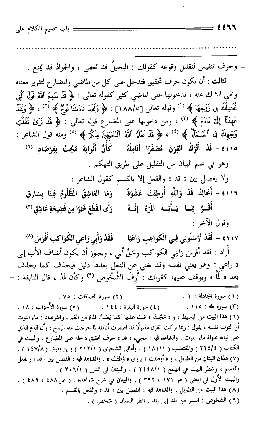 ولا يفصل بين «قد» والفعل إلا بالقسم كقول الشاعر: