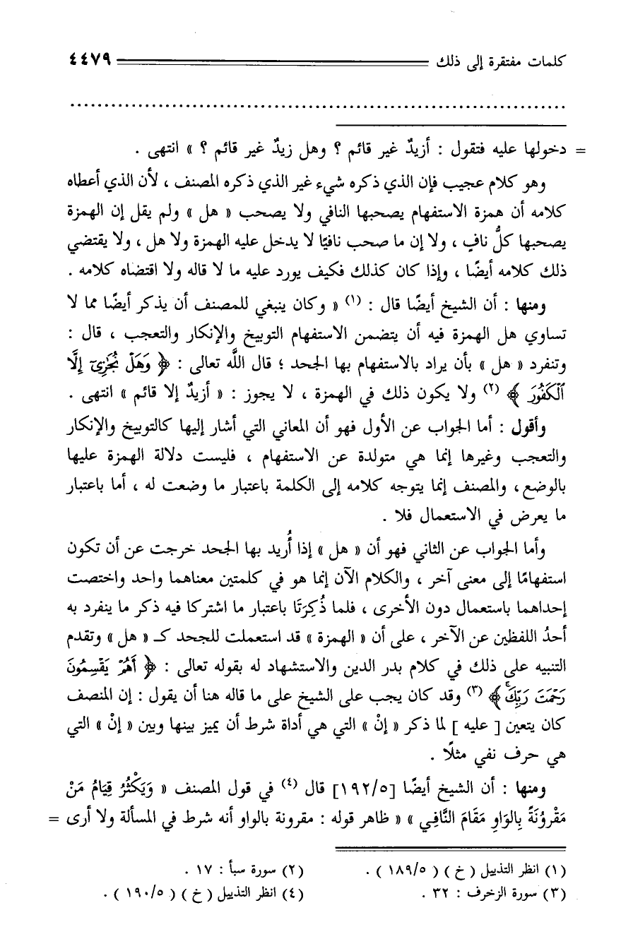 دخولها عليه فتقول: أزيد غير قائم؟ وهل زيد غير قائم؟» انتهى.