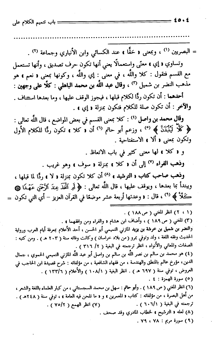 (¬3) المغني (ص 189)، وأضاف ابن هشام «والفراء ومن وافقهما».