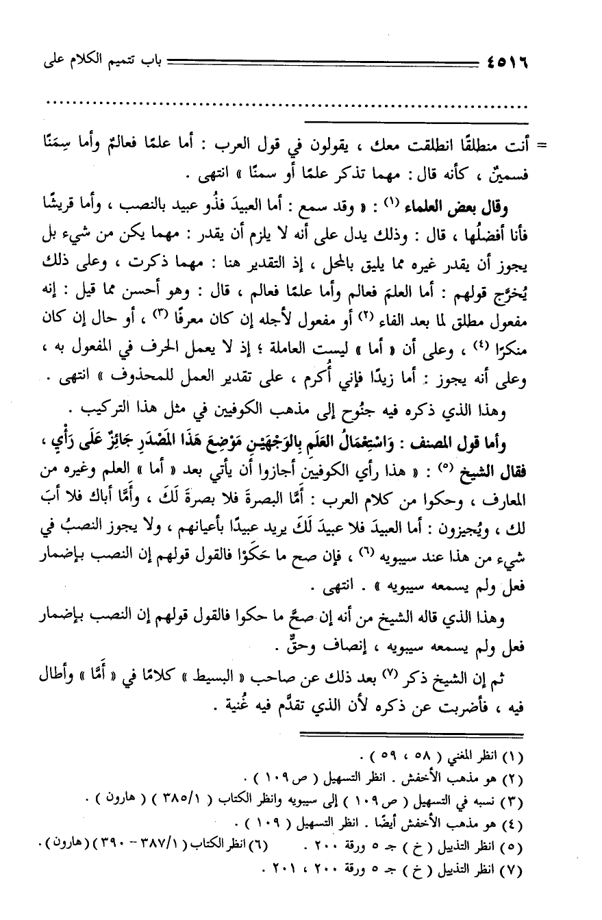 ثم إن الشيخ ذكر (¬7) بعد ذلك عن صاحب «البسيط» كلاما في «أمّا» وأطال فيه، فأضربت عن ذكره لأن الذي تقدّم فيه غنية.