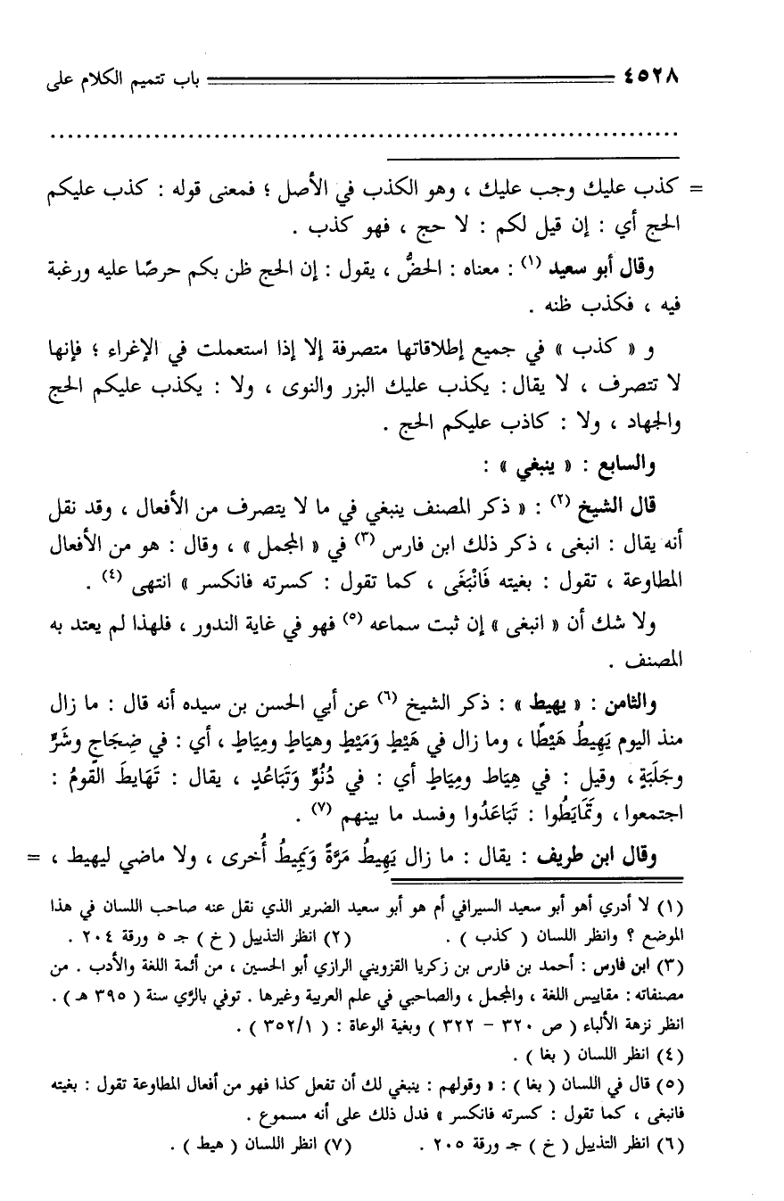 (¬1) لا أدري أهو أبو سعيد السيرافي أم هو أبو سعيد الضرير الذي نقل عنه صاحب اللسان في هذا الموضع؟ وانظر اللسان (كذب).