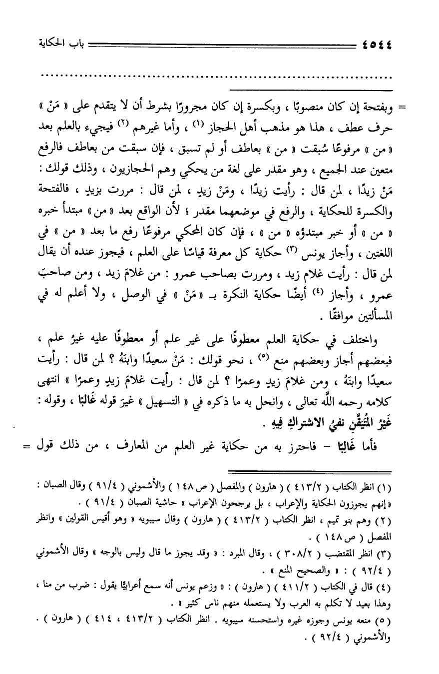 (¬5) منعه يونس وجوزه غيره واستحسنه سيبويه. انظر الكتاب (2/ 413، 414) (هارون).