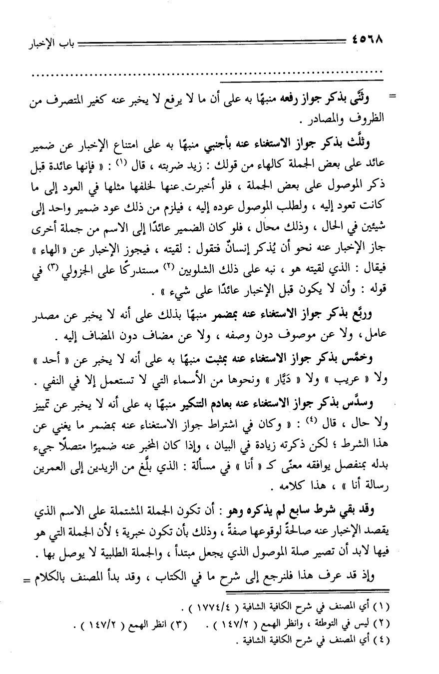 (¬4) أي المصنف في شرح الكافية الشافية.