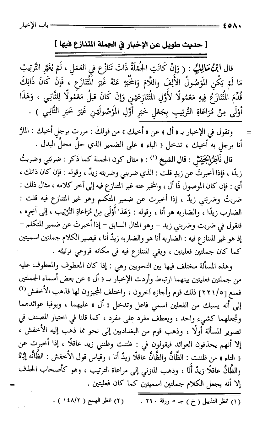 [حديث طويل عن الإخبار في الجملة المتنازع فيها]