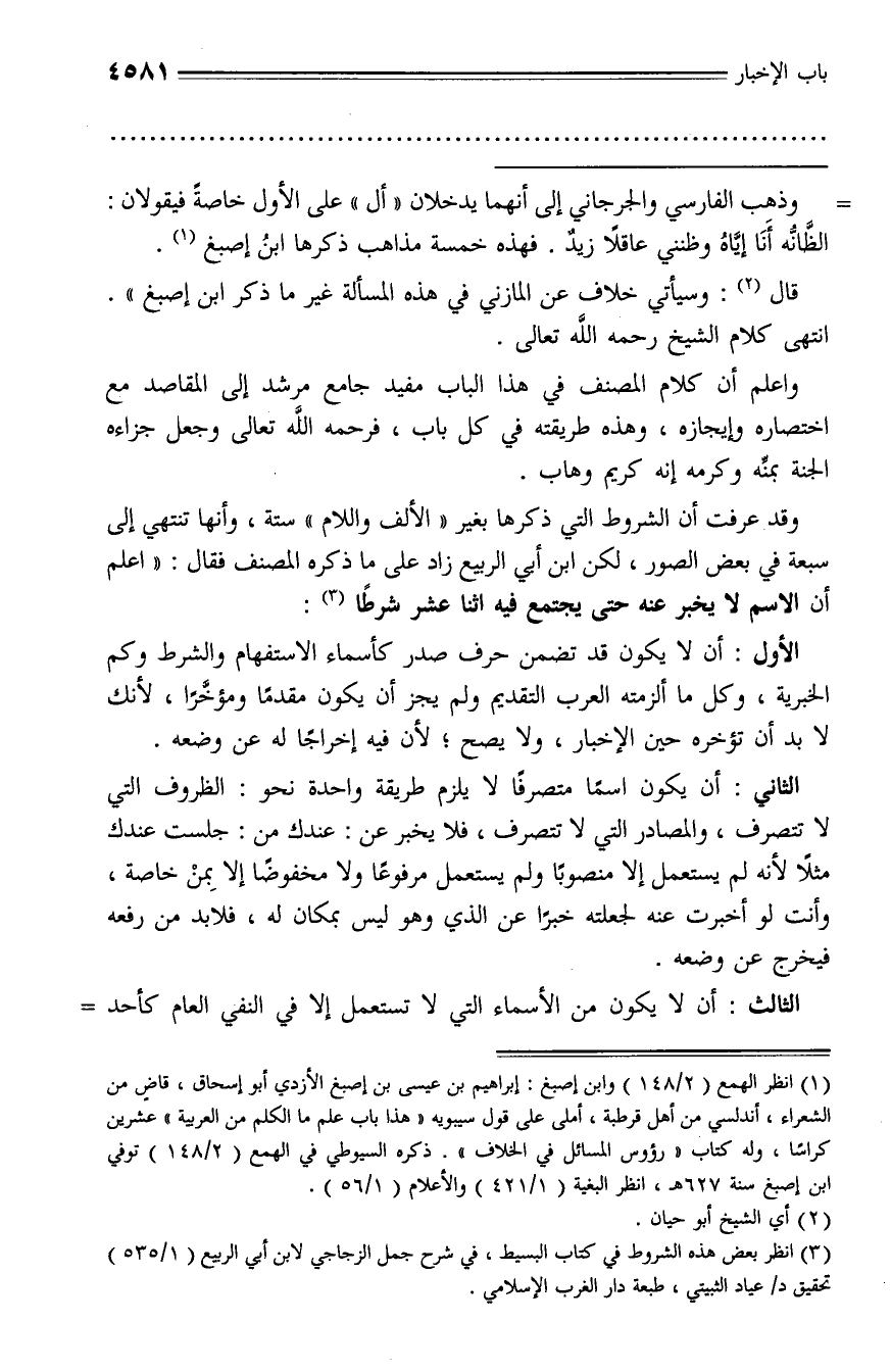 (¬3) انظر بعض هذه الشروط في كتاب البسيط، في شرح جمل الزجاجي لابن أبي الربيع (1/ 535) تحقيق د/ عياد الثبيتي، طبعة دار الغرب الإسلامي.