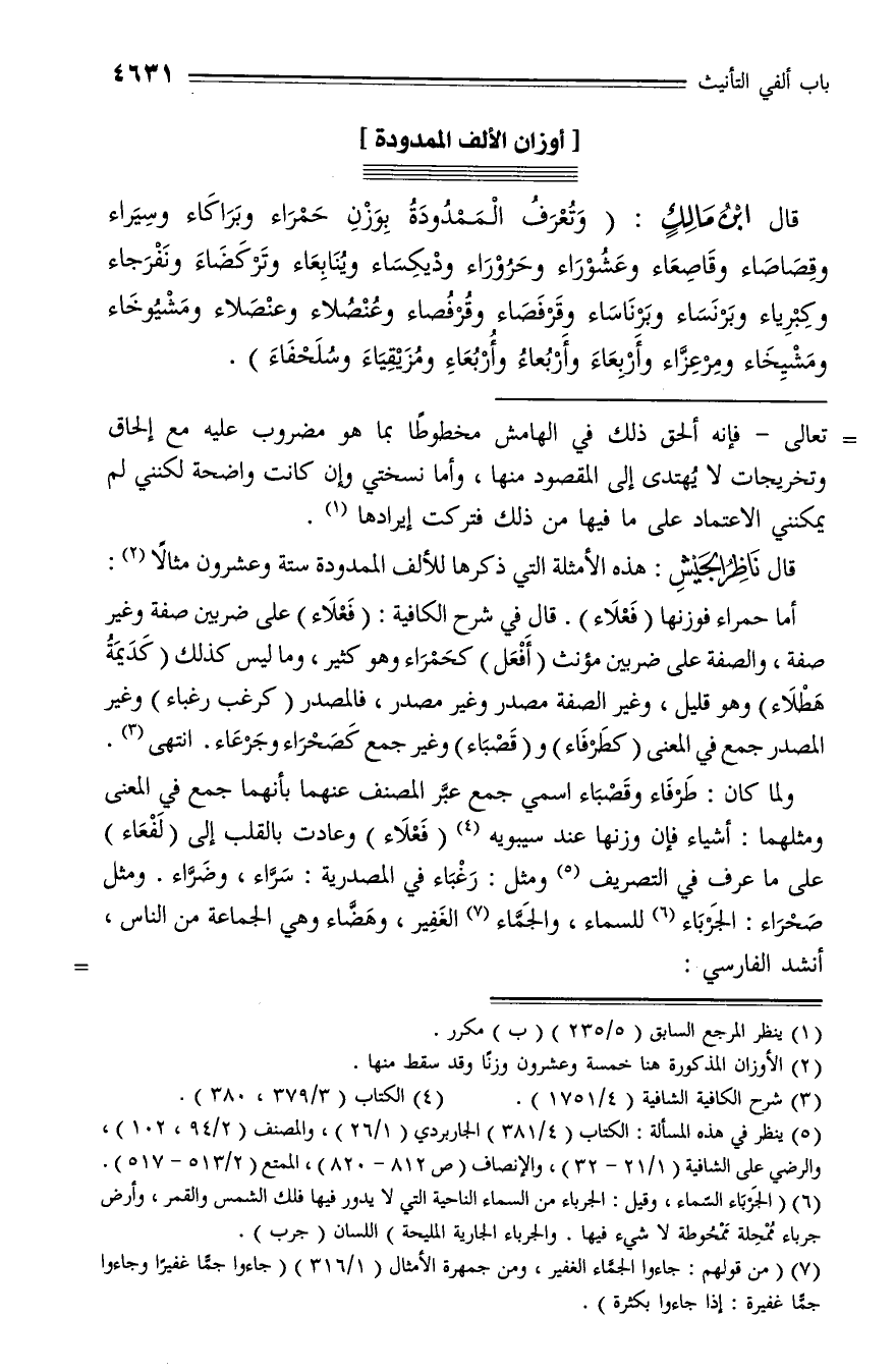 قال ناظر الجيش: هذه الأمثلة التي ذكرها للألف الممدودة ستة وعشرون مثالا (¬2):
