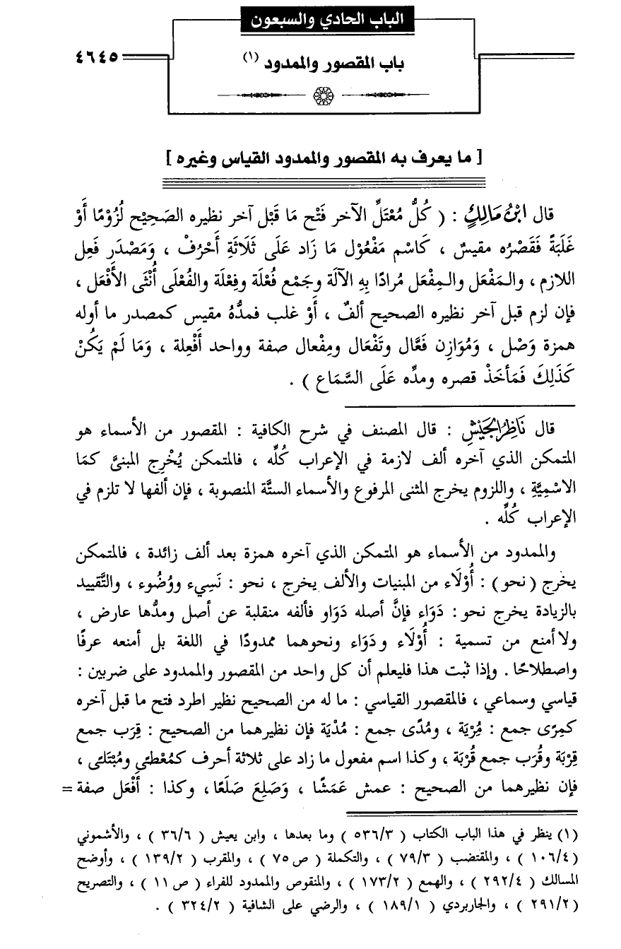 الباب الحادي والسبعون باب المقصور والممدود (¬1)