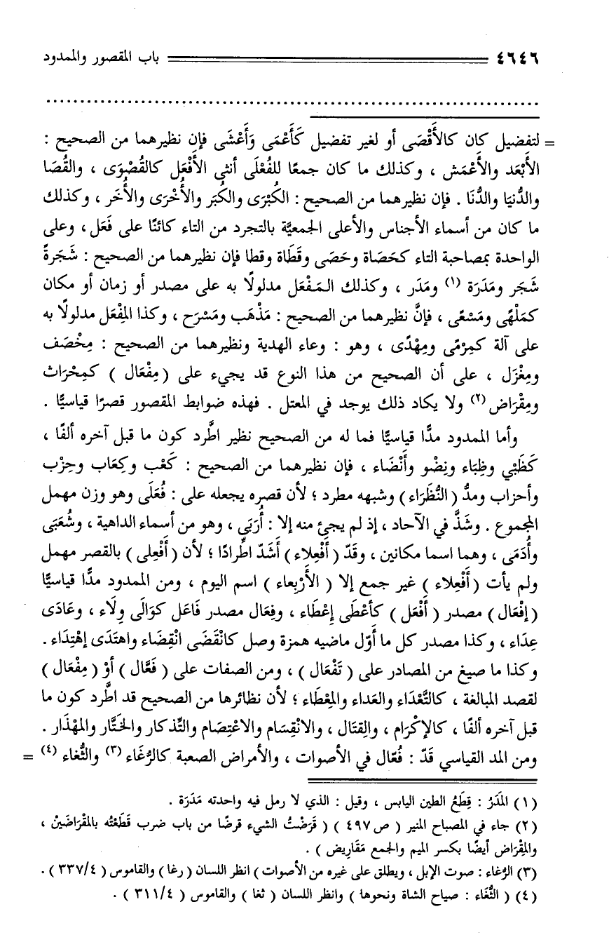 ومن المد القياسي قدّ: فعّال في الأصوات، والأمراض الصعبة كالرّغاء (¬3) والثّغاء (¬4) -