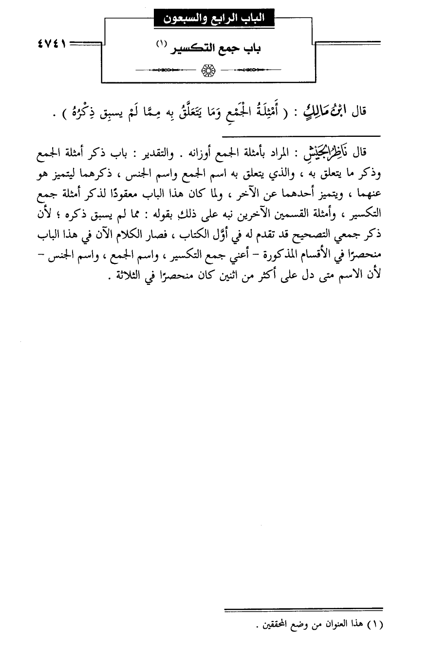 الباب الرابع والسبعون باب جمع التكسير (¬1)