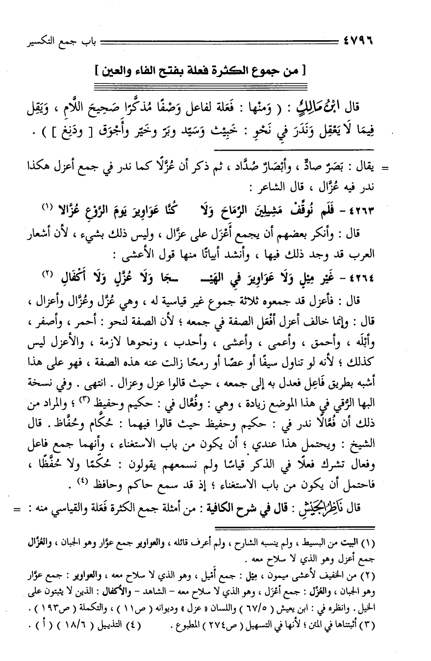 قال ناظر الجيش: قال في شرح الكافية: من أمثلة جمع الكثرة فعلة والقياسي منه: -