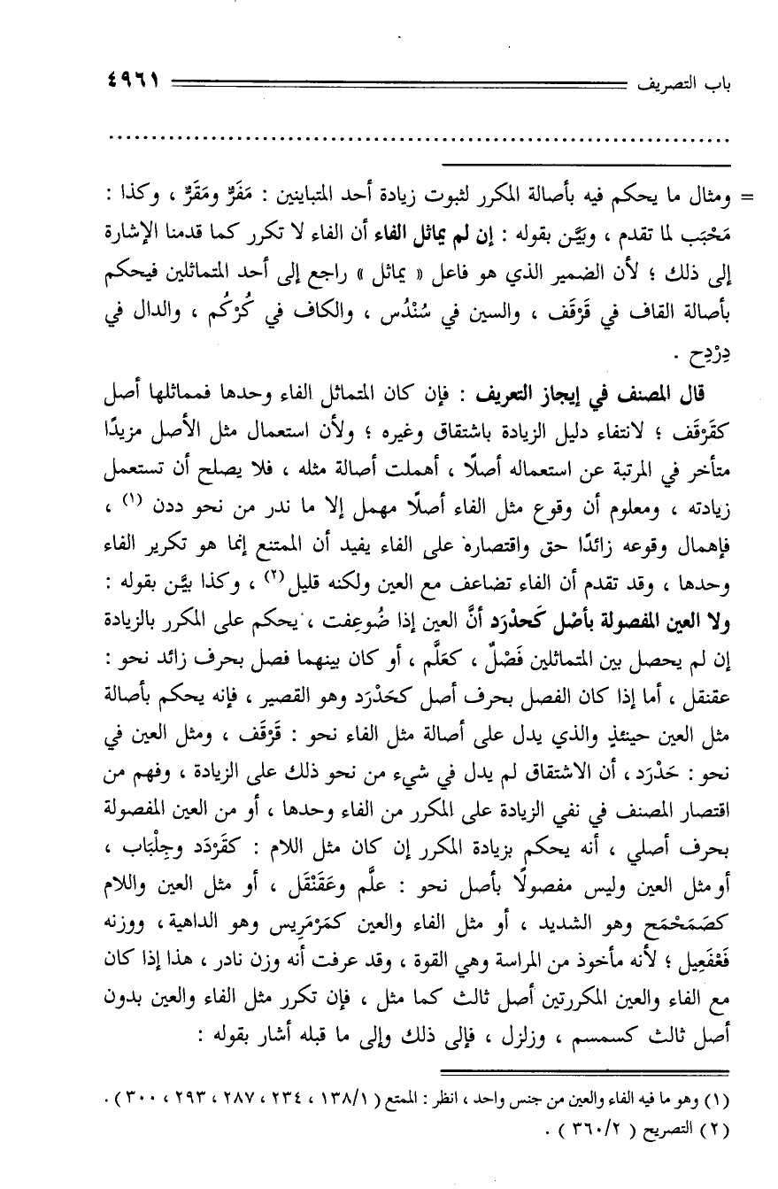 (¬1) وهو ما فيه الفاء والعين من جنس واحد، انظر: الممتع (1/ 138، 234، 287، 293، 300).