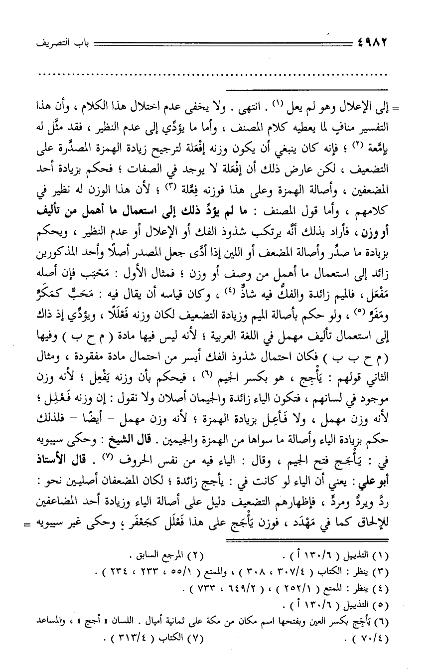 (¬3) ينظر: الكتاب (4/ 307، 308)، والممتع (1/ 55، 233، 234).