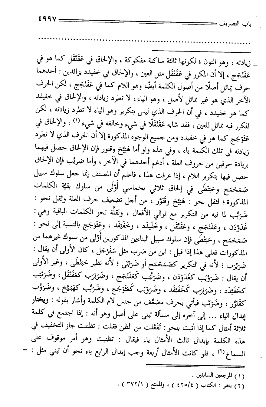 (¬2) ينظر: الكتاب (4/ 425)، والممتع (1/ 372).