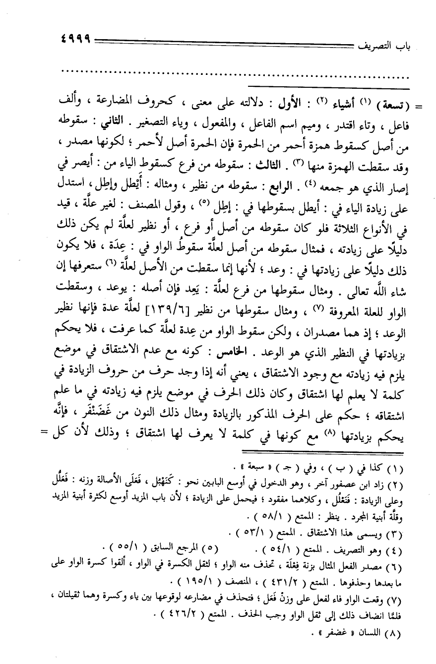 (¬4) وهو التصريف. الممتع (1/ 54).
