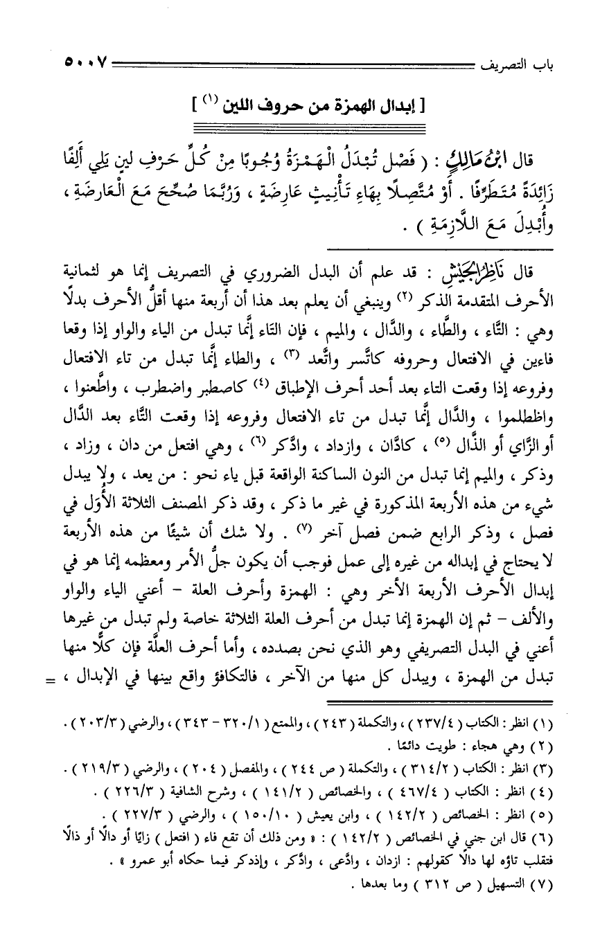 (¬5) انظر: الخصائص (2/ 142)، وابن يعيش (10/ 150)، والرضي (3/ 227).