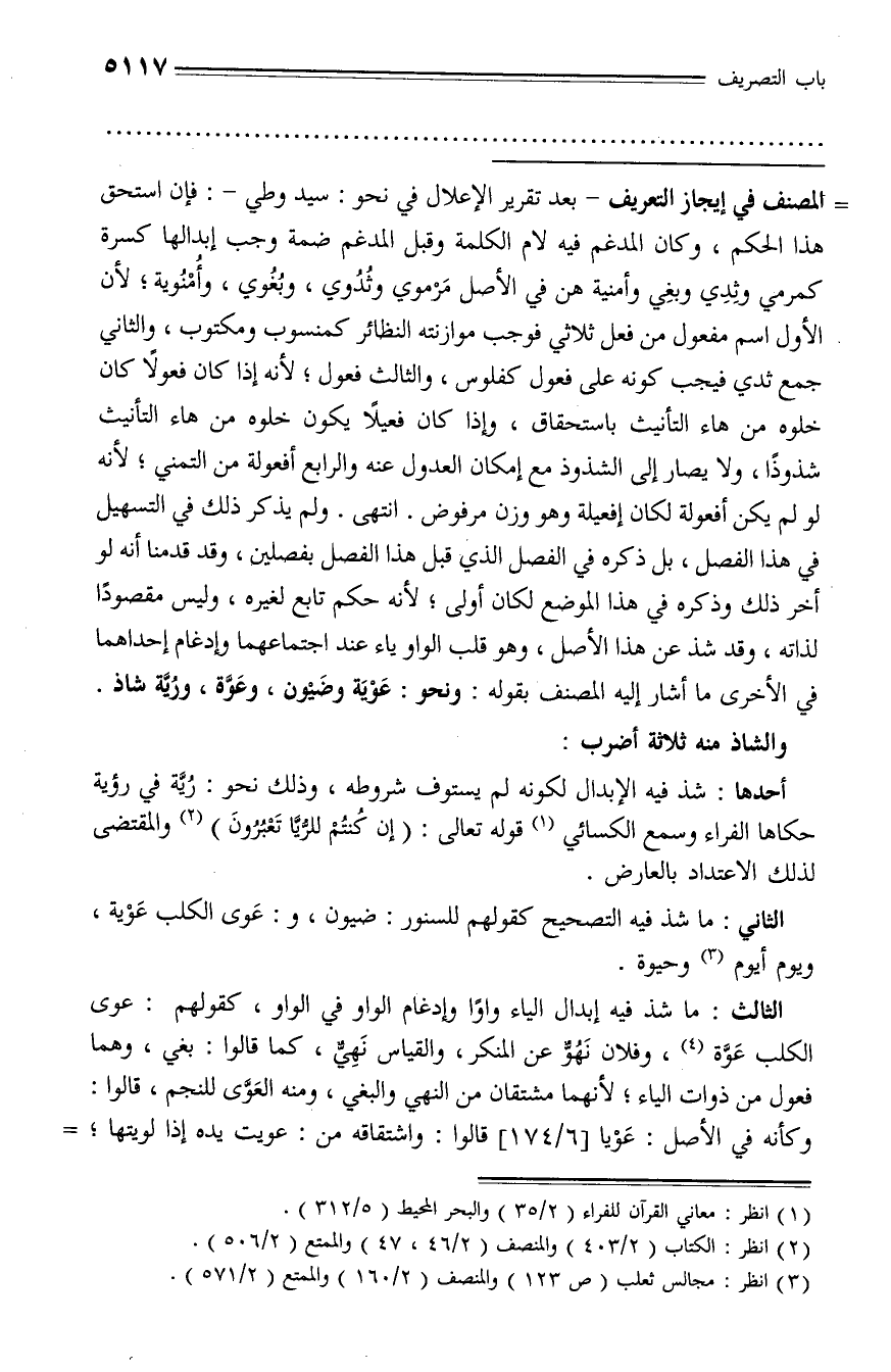(¬3) انظر: مجالس ثعلب (ص 123) والمنصف (2/ 160) والممتع (2/ 571).