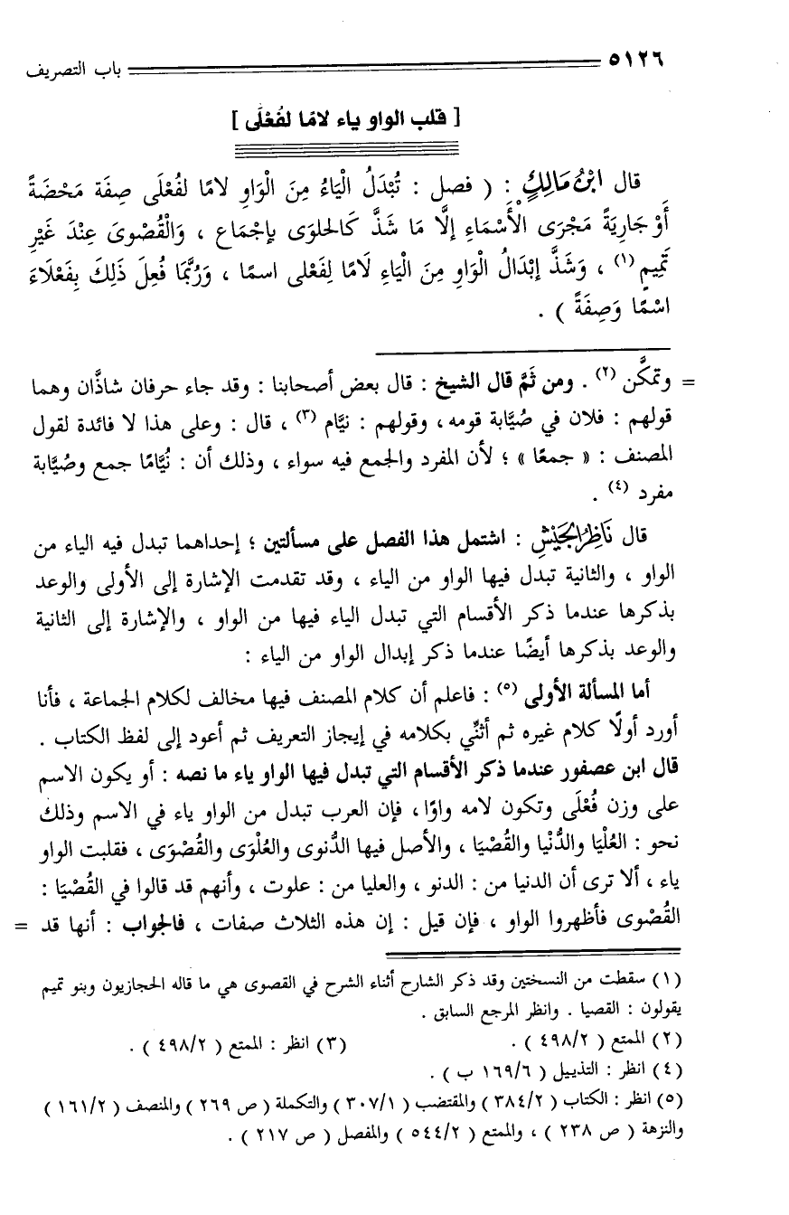 (¬5) انظر: الكتاب (2/ 384) والمقتضب (1/ 307) والتكملة (ص 269) والمنصف (2/ 161) والنزهة (ص 238)، والممتع (2/ 544) والمفصل (ص 217).
