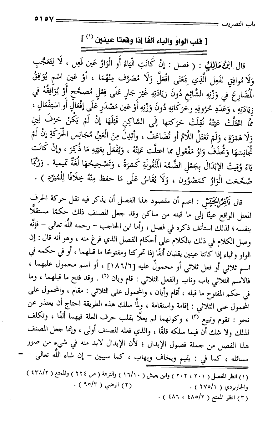 (¬1) انظر المفصل (201، 202) وابن يعيش (10/ 16) والنزهة (ص 224) والممتع (2/ 438) والجاربردي (1/ 275).