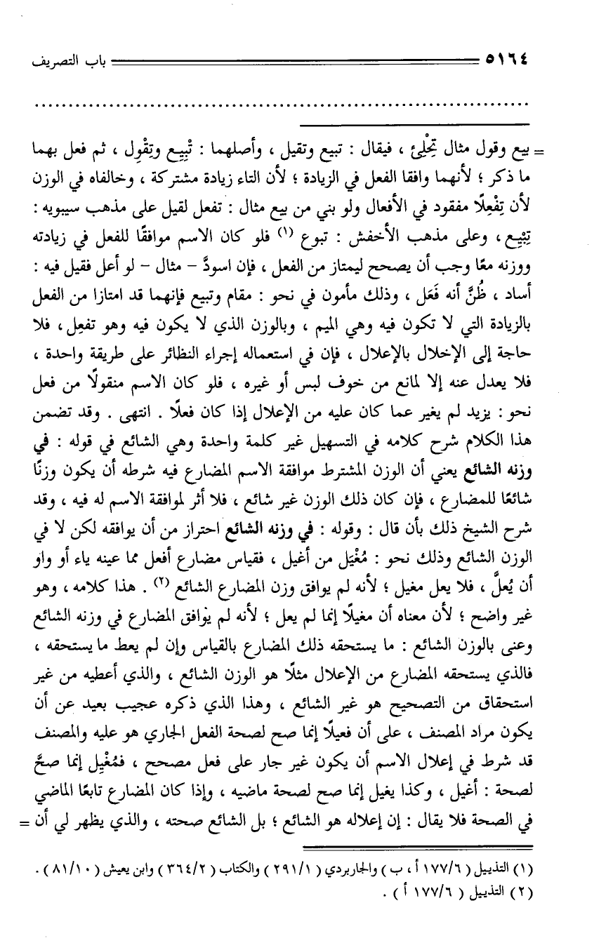 (¬1) التذييل (6/ 177 أ، ب) والجاربردي (1/ 291) والكتاب (2/ 364) وابن يعيش (10/ 81).