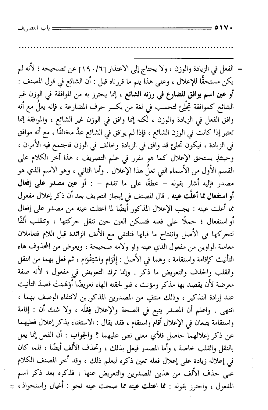 الفعل في الزيادة والوزن، ولا يحتاج إلى الاعتذار [6/ 190] عن تصحيحه؛ لأنه لم يكن مستحقّا للإعلال، وعلى هذا يتم ما قررناه قبل: أن الشائع في قول المصنف: