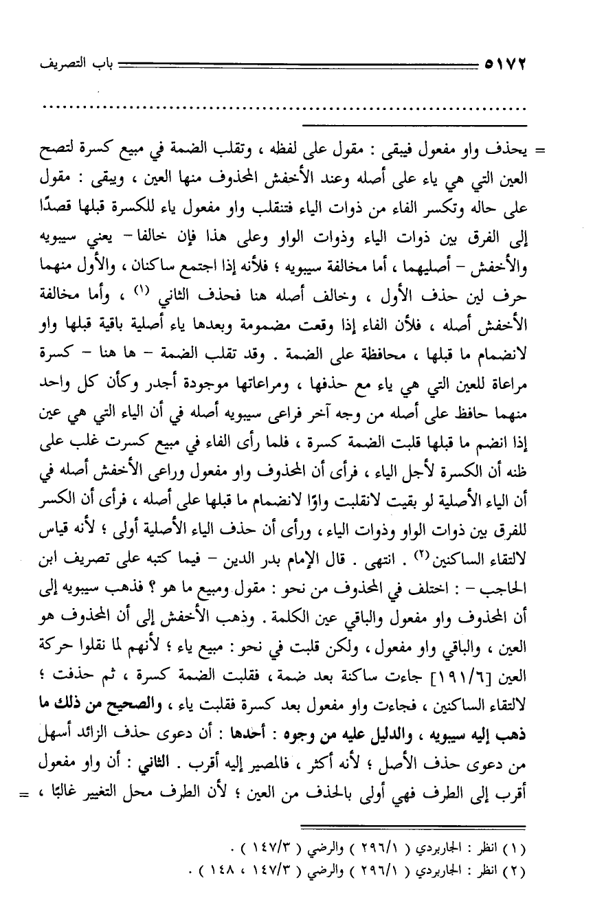(¬2) انظر: الجاربردي (1/ 296) والرضي (3/ 147، 148).