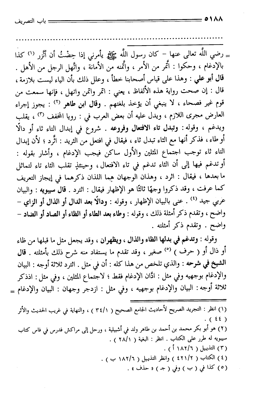 (¬2) هو أبو بكر محمد بن أحمد بن طاهر ولد في أشبيلية، ورحل إلى مراكش فدرس في فاس كتاب سيبويه له طرر على الكتاب. انظر: البغية (1/ 28).